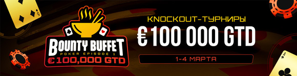 С 1 по 4 марта 2023 завершайте миссии «All You Can Eat» и «That’s My Plate», чтобы получить возможность принять участие в нокаут-турнирах с гарантированными €100,000 призовых, в том числе вы сможете принять участие в главном событии «A La Carte» Main Event (Flighted KO). с бай-ином €15, и гарантированным призовым фондом €20,000.